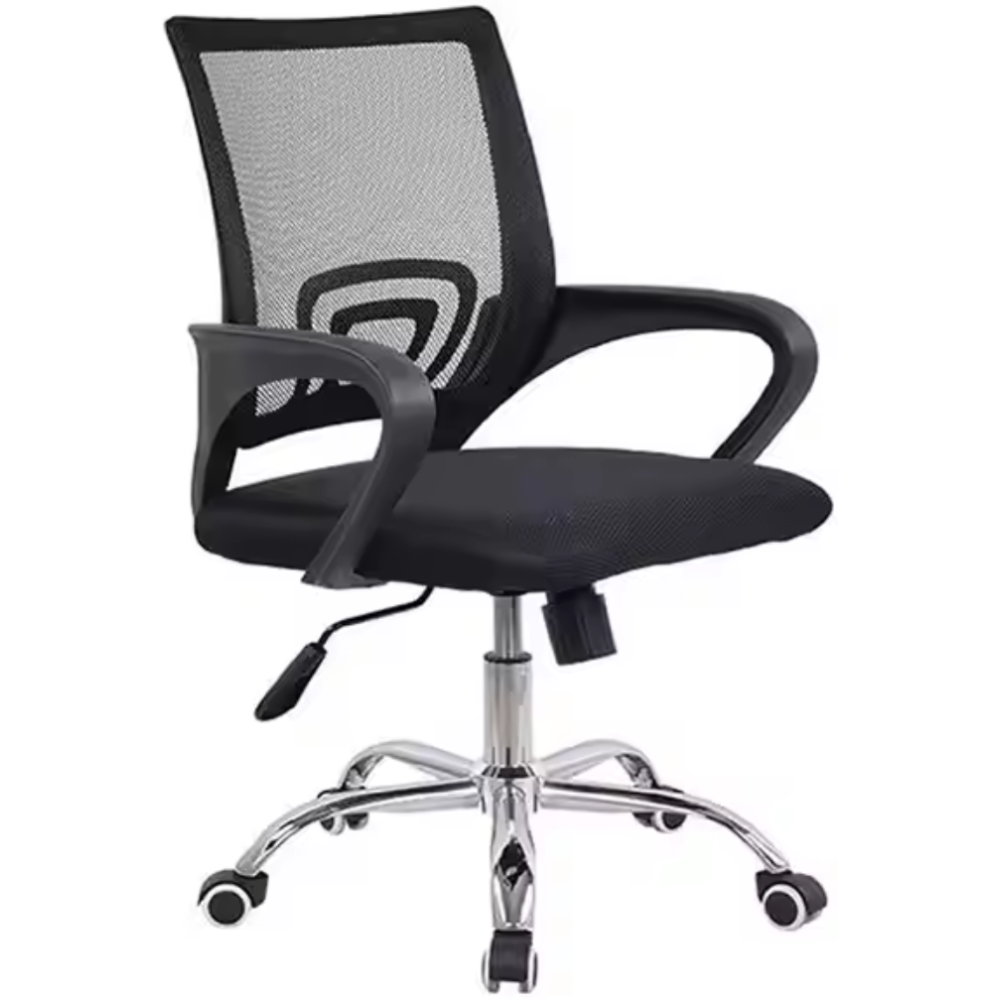 Chaise bureau 4005 ergonomique noire pivotante et confortable - Fabriquée en tissu maillé de haute résistance  et anti transpiration - Dispose d'un piston à gaz qui permet la rotation à 360° et le réglage de la hauteur de la chaise  Parfaite pour les bureaux à domicile, les postes de travail ou des salles de conférence - Dotée d'un design de 5 pieds en métal qui assurent sa stabilité - Dimensions: 60 x 56 x 90 cm.