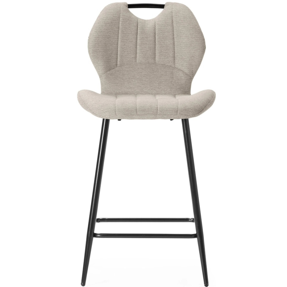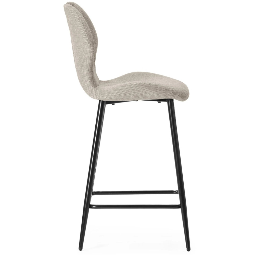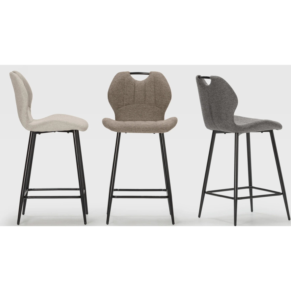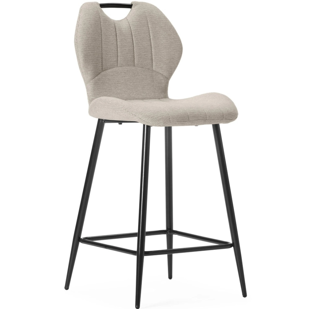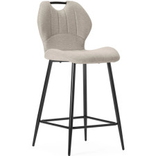 Tabouret Muli, coloris: beige. Assise et dossier : Tissu. Piètement en métal laqué noir. Tissu : 100% polyester. Densité du siège : mousse de 28 kg. Densité du dossier : mousse de 20 kg. Dimensions produit : Longueur 48 cm x largeur 51 cm x Hauteur 65/96 cm - Poids net : 5,2 kg. Poids net total : 10,4 kg.