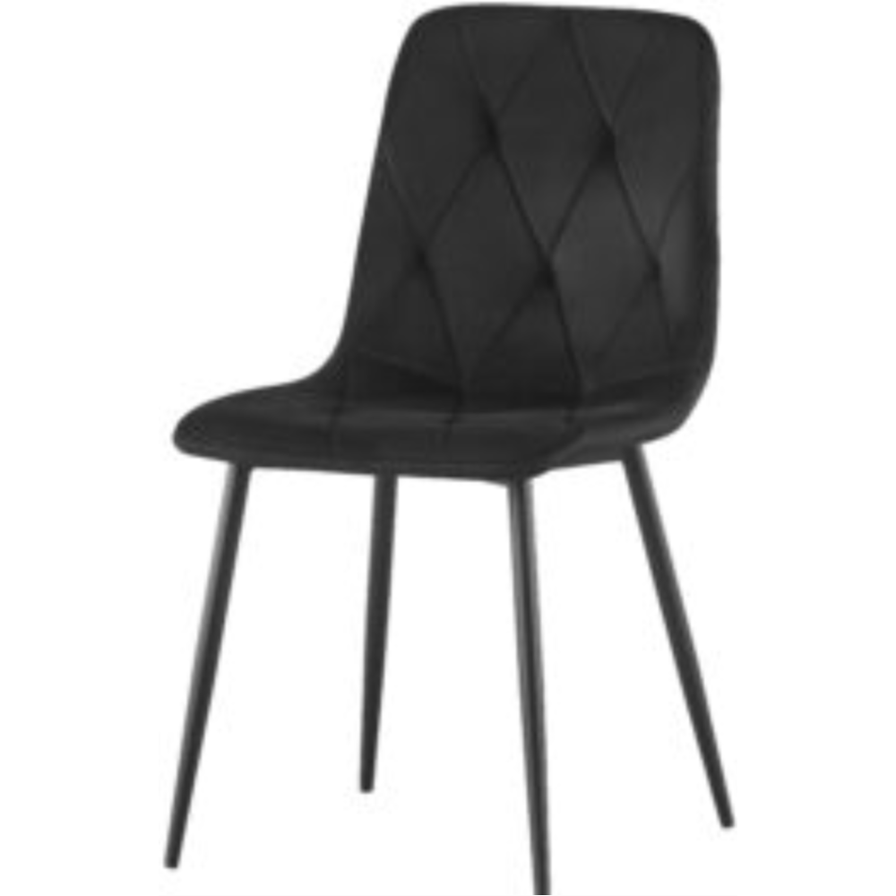 Chaise velours de couleur noire 584 moderne à la structure stable en métal noir revêtu de poudre - Dispose d'une assise confortable car dossier et assise rembourrés à souhait - Peut supporter jusqu'à 120kg - Excellent choix pour votre table de salle à manger, mais peut aussi convenir au salon ou pour d'autres usages - Coque d'assise et dossier entièrement recouverts d'un revêtement facile à entretenir - Base à piètement stable.
