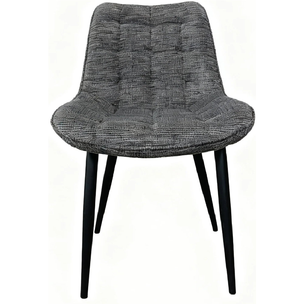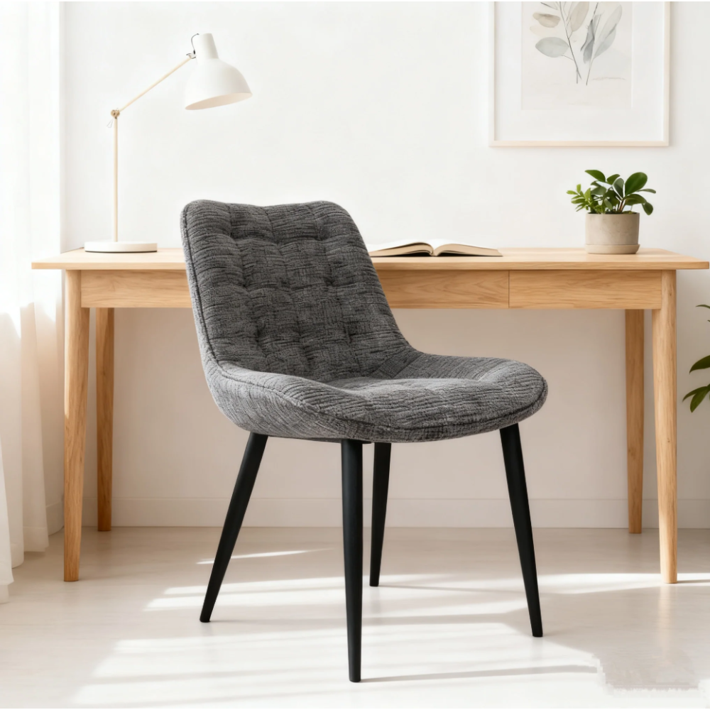Lot de 6 chaises Castile LY-N1289C - Dotées d’un dossier en MDF imitation bois - Conçues avec une structure en métal de couleur noir - Dispose d’une assise ferme et confortable recouverte de tissu microfibre gris - Idéales pour être disposées à l’intérieur ou à l’extérieur - Conviennent pour compléter une table à manger rectangulaire - Dimensions d’une chaise : 41 cm large x 43 cm de long x 76 cm de haut - Montées sur des pattes hautes et fines pour un rangement sous table aisé.