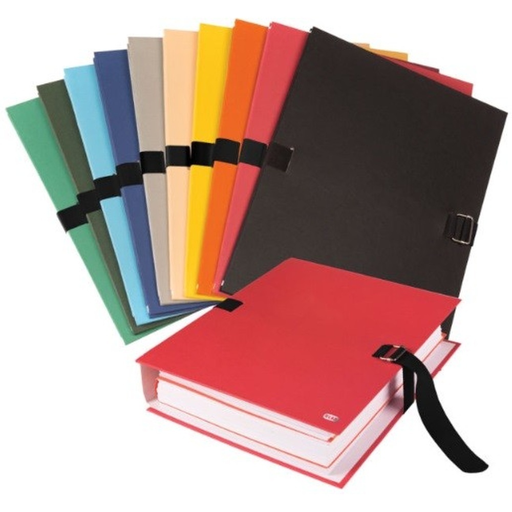 Chemise en carton rigide rembordé de papier toilé, sans rabat, extensible, dos raccordable, sangle de fermeture textile avec boucle en métal, capacité: jusqu'à 12 cm en paquet de 10 pièces dimensions: (L)240 x (H)320 mm