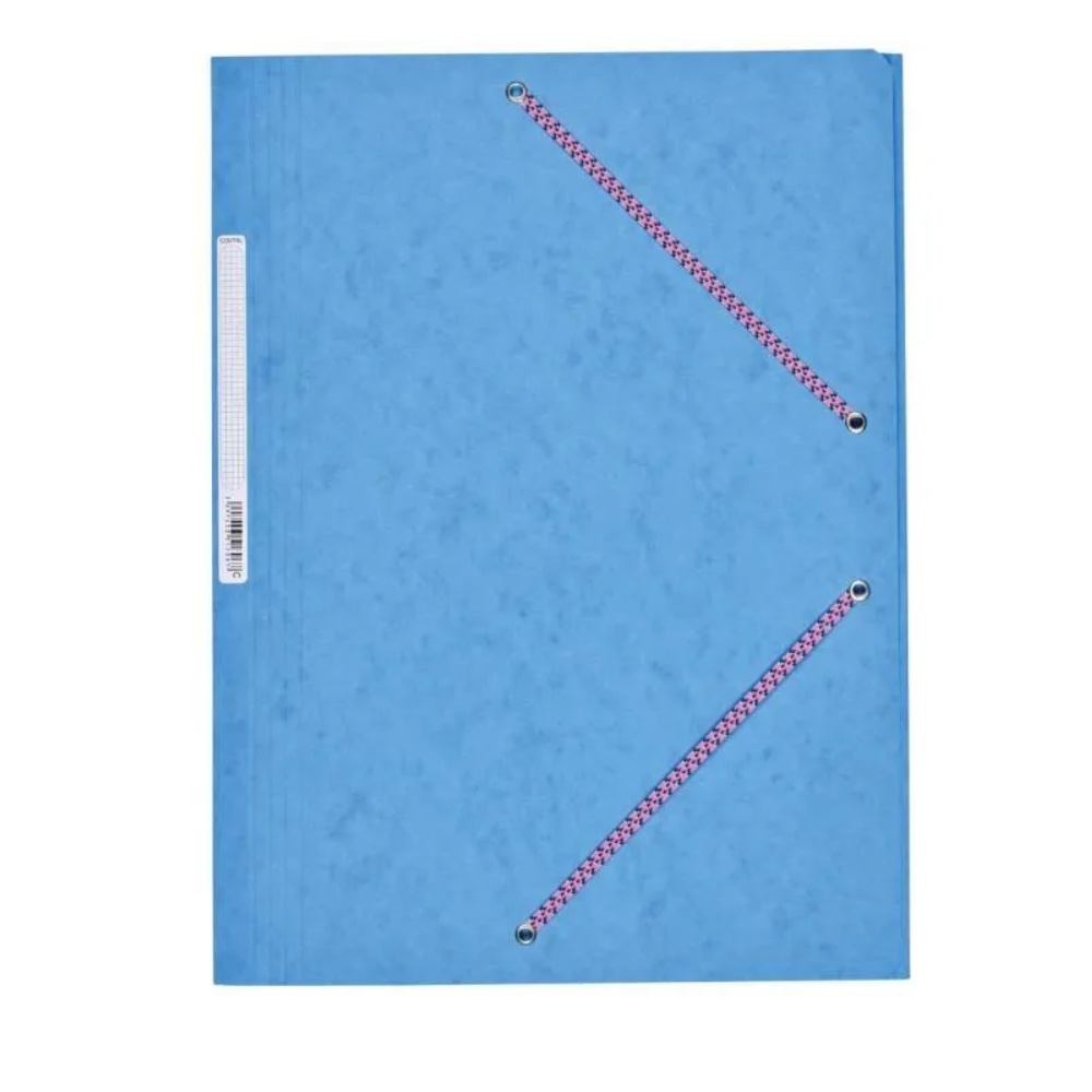 Chemise carte lustrée 24 x 32 cm à rabats avec élastique et étiquette de dos bleu ciel