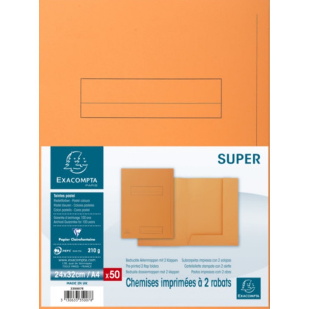 Chemise à 1 rabat - Super 210.Format : 240 x 320 mm. Grammage : 210 g/m².Conditionnement : Lot de 50.Assortiment de couleurs.
