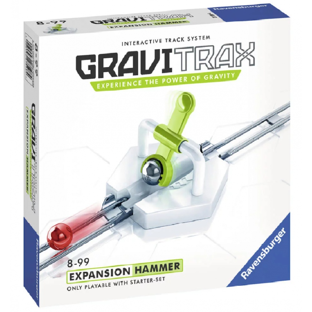 Un maximum de puissance ! Avec le marteau, donne un nouvel élan à ta bille pour qu'elle parcoure une plus longue distance. Combine le marteau avec le starter set GraviTrax® et ajoute une dose d'action supplémentaire à tes parcours. A partir de 8 ans.