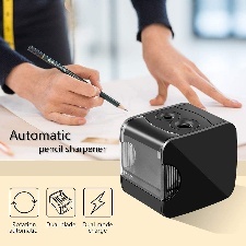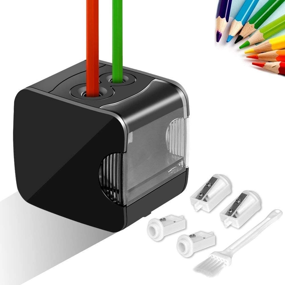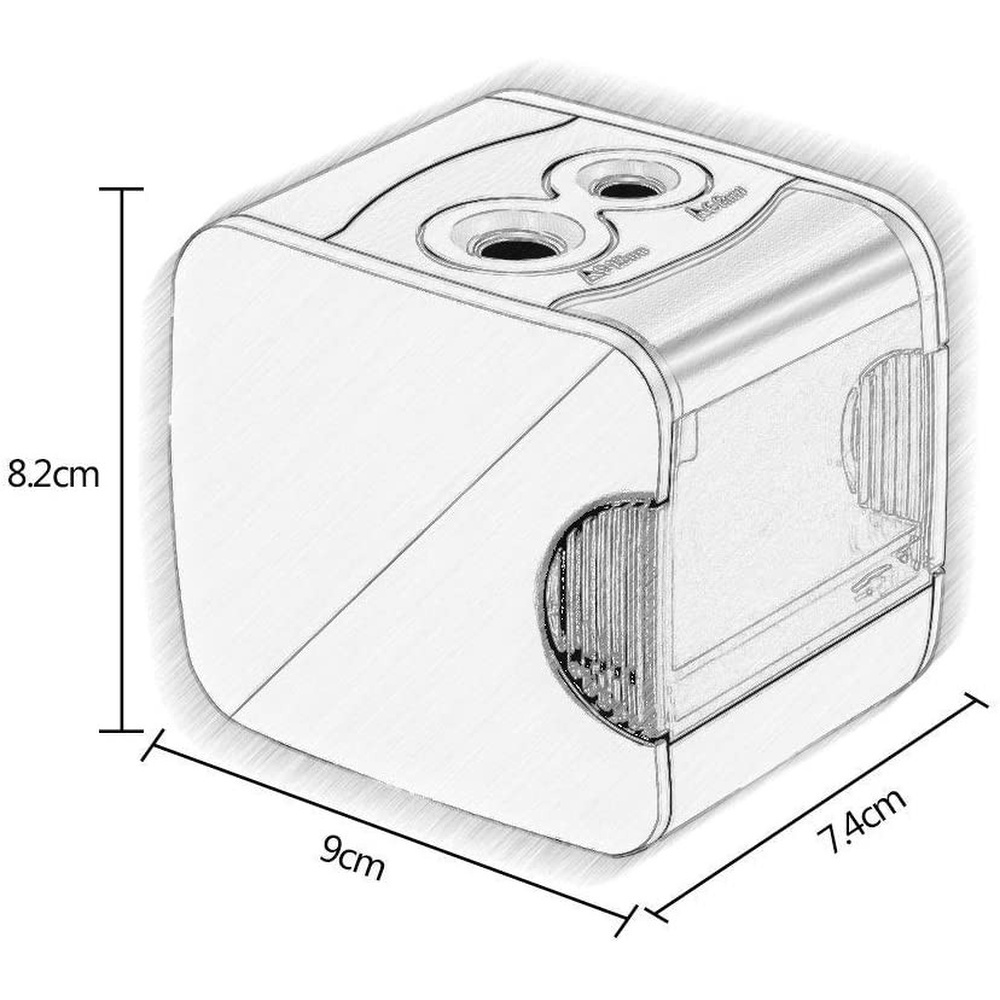 Taille crayon électrique 2 usages - Ø de 6 a 12 mm - wonday. Le taille-crayon électrique peut être chargé à l'aide d'un câble USB ou de 4 piles AA (piles non reçues).Deux lames de rechange supplémentaires prolongent la durée de vie de l'affûteur, le rendant plus efficace dans les conditions de travail.Il y a deux trous de diamètres différents, 8 mm pour les crayons standard (6,5 mm à 8 mm Ø), 12 mm pour les crayons de couleur (9 à 12 mm Ø), en quelques secondes à peine que l’aiguisage soit terminé.Le taille-crayon s'arrête automatiquement lorsque le couvercle est ouvert. Il suffit de brancher le stylo et d’appuyer légèrement, il démarre automatiquement. Un grand récipient de collecte facilite le nettoyage de l'affûteuse électrique avec une brosse.