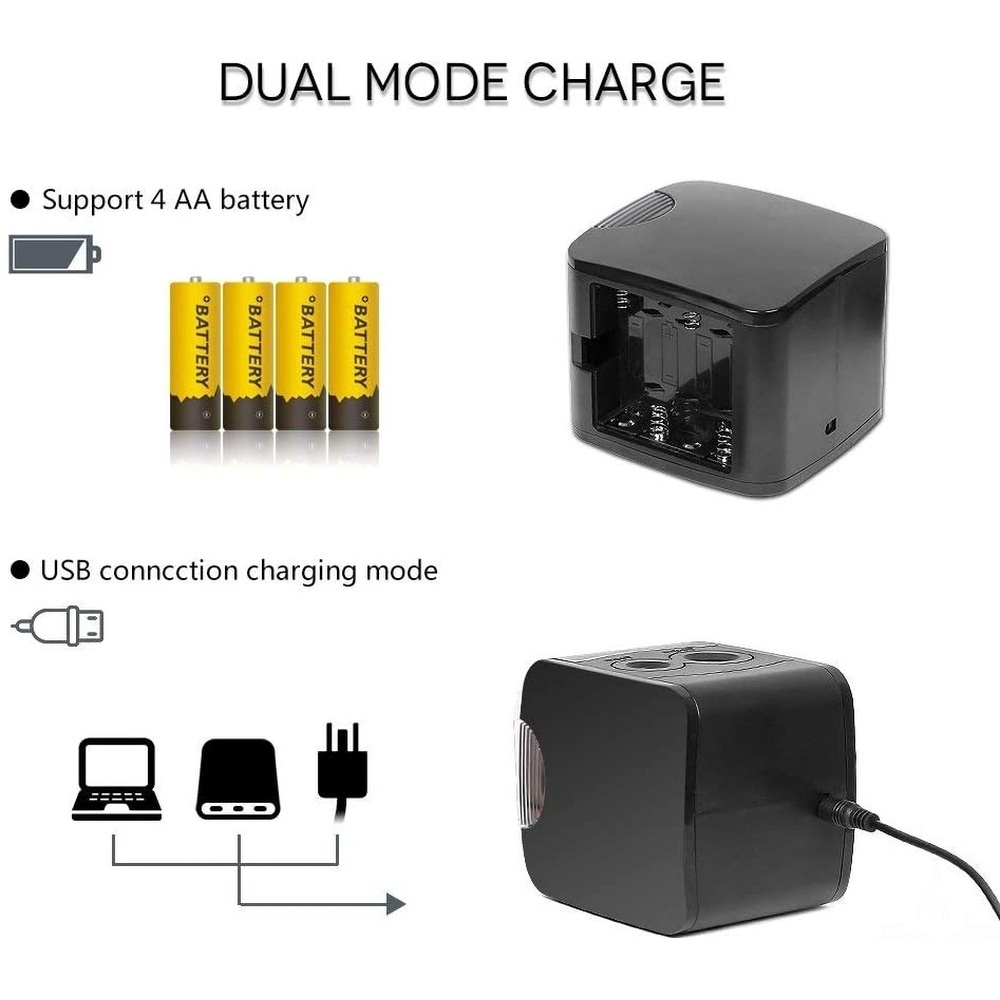 Taille crayon électrique 2 usages - Ø de 6 a 12 mm - wonday. Le taille-crayon électrique peut être chargé à l'aide d'un câble USB ou de 4 piles AA (piles non reçues). Deux lames de rechange supplémentaires prolongent la durée de vie de l'affûteur, le rendant plus efficace dans les conditions de travail. Le taille-crayon s'arrête automatiquement lorsque le couvercle est ouvert.