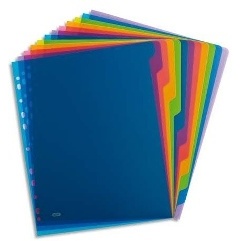 Intercalaires elba neutres color life A4 12 positions. Matière : Polypropylène. Dimensions : 21 x 29.7 mm. Assortiment de couleurs.