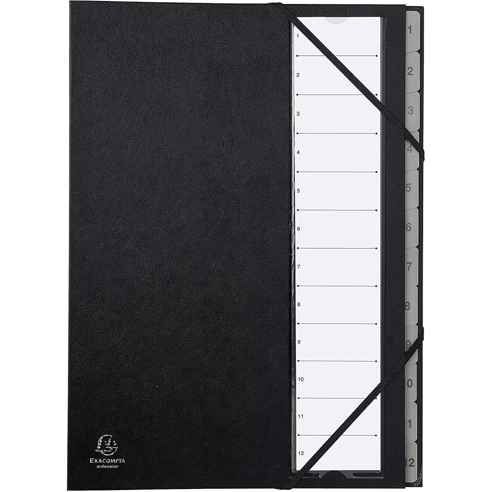 EXACOMPTA Trieur Ordonator, PP, 26 compartiments, noir dos pliant extensible à soufflet, couverture en carton avec film plastique renforcé, onglets et étiquettes préimprimées, onglets plastiques avec un effet de loupe, intérieur en carton de couleur ivoire 300 g/m2, dimensions : 250 x 330mm.