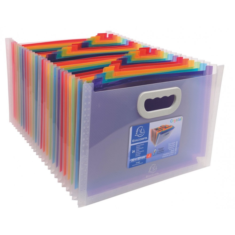 Le trieur Maxi permet de classer dans 24 compartiments tous les documents essentiels, que ce soit par rubrique ou par ordre alphabétique. Les onglets sont équipés de porte-étiquette pour identifier facilement chaque compartiment. Deux planches d'étiquettes sont fournies, elles sont imprimables sur l'application Kreaman® du site www.exacompta.com. Avec 2 porte-étiquettes sur la face avant du trieur pour insérer des cartes de visite ou identifier le contenu.