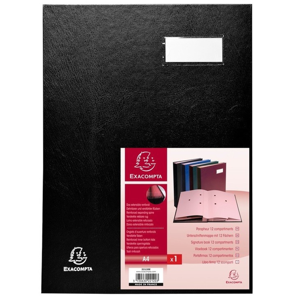 Parapheurs Direction couverture plastifiée dos à soufflets toilés- Porte-étiquette en 1ere de couverture- Compartiments en carte rpose avec 3 perforations permettant de déceler la présence de documents- Encoches renforcées dans la partie inférieure des pages format 240*320 pour A4 4 couleurs assorties