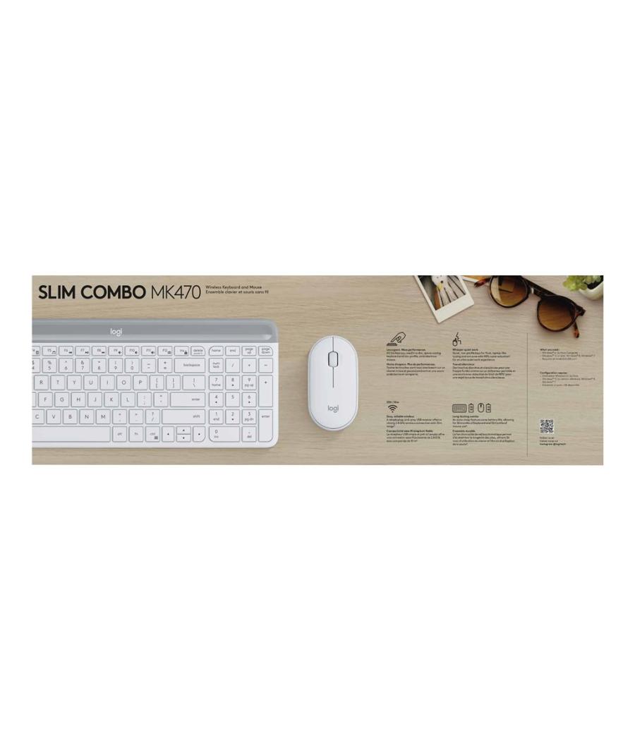 Logitech Slim Wireless Combo MK470 - Ensemble clavier et souris - sans fil - 2.4 GHz - Français - blanc cassé