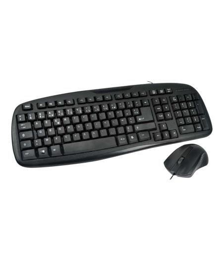 | Cet ensemble clavier + souris USB filaire comprenant un clavier résistant aux projections de liquide et d'une souris optique, saura répondre à vos principales exigences. | |