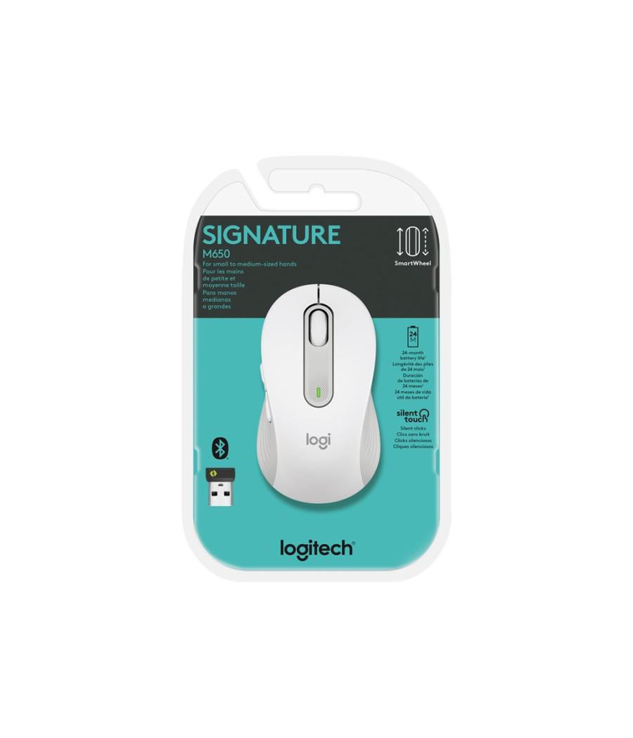 Logitech Signature M650 - Souris - optique - 5 boutons - sans fil - Bluetooth, 2.4 GHz - récepteur USB Logitech Logi Bolt - blanc cassé
