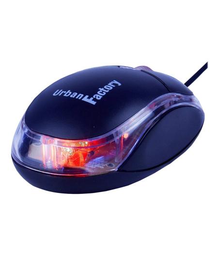 Urban Factory Cristal Mouse Optical USB 2.0, 800dpi, Internal Light, Black - Souris - 3 boutons - filaire - USB - noir, transparent