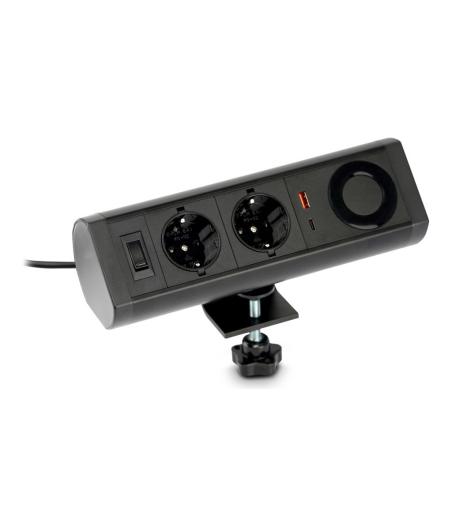 Urban Factory POWEE Desk - Coupe-circuit - USB-C, USB-A, chargeur sans fil - 100-250 V - 2200 Watt - entr?e : Type F/E - connecteurs de sortie : 2 - 1.35 m cordon - noir