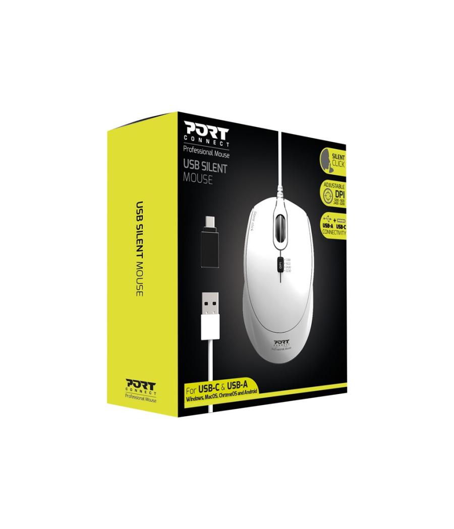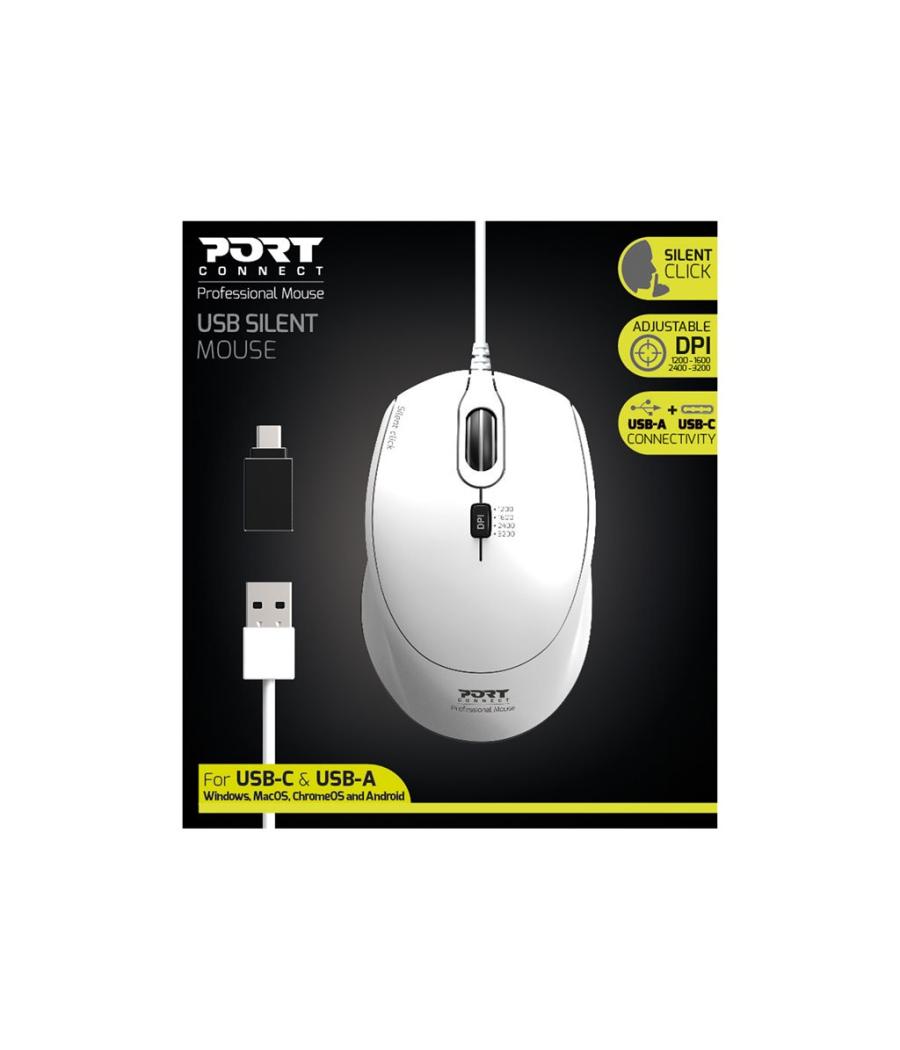 PORT Connect SILENT - Souris - optique - 3 boutons - filaire - USB, USB-C - blanc