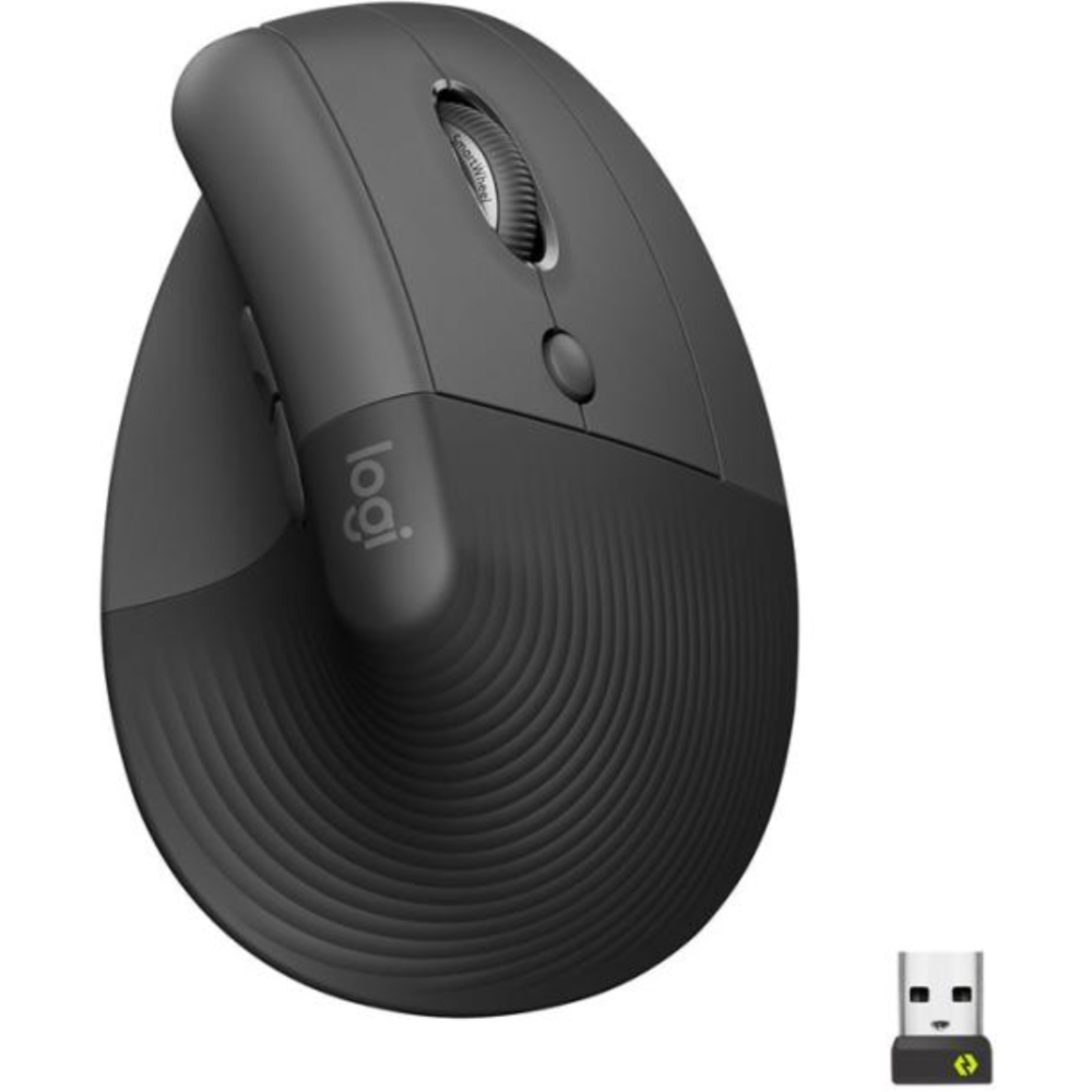 Logitech Lift Vertical Ergonomic Mouse - Souris verticale - ergonomique - optique - 6 boutons - sans fil - Bluetooth, 2.4 GHz - récepteur USB Logitech Logi Bolt - graphite