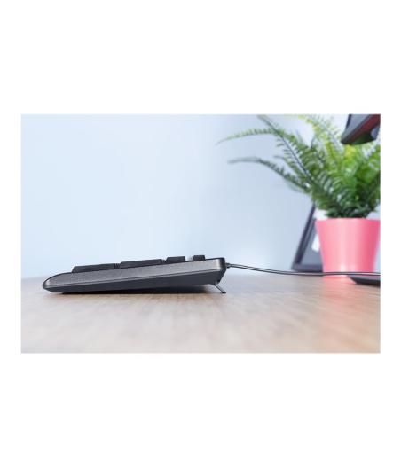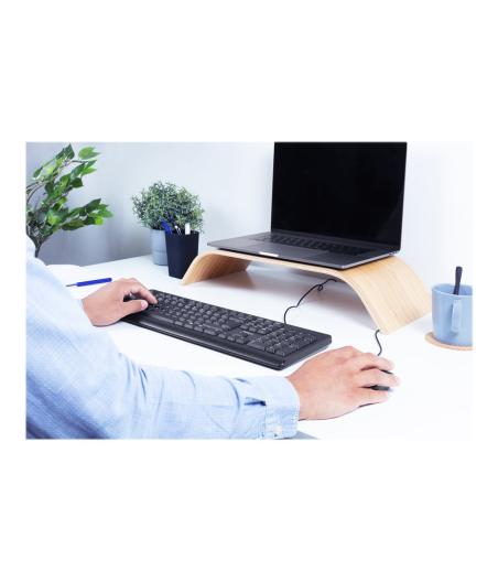 Clavier filaire Logitech K120 - Type : USB, AZERTY (FR) - Compatibilité : Windows XP / Vista / 7 (32 & 64 bits), Linux Kernel 2.6+ - Utilisation : Universelle, prêt à l'emploi (Plug and Play) - Design : Taille standard avec pavé numérique ; Résistant aux éclaboussures ; Pieds inclinables robustes ; Caractères blancs, lisibles - Confort : Frappe stable et silencieuse ; Barre d’espace courbée, touches à rebond - Dimensions : 45 x 15,5 x 2,4 cm - Poids : 550 g - Câble USB : 1,5 m inclus - Contenu de la boîte : Clavier + documentation utilisateur - EAN : 5099206020726.