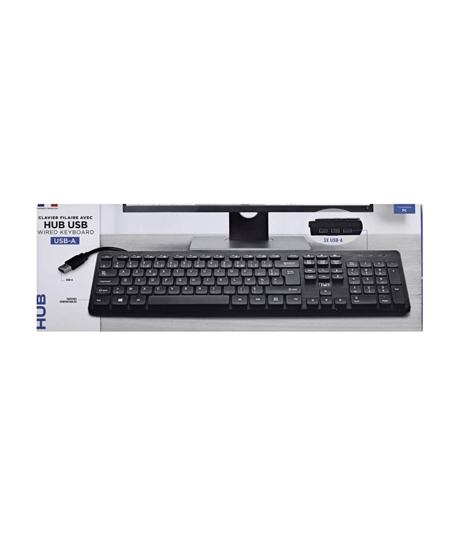| Clavier filaire USB-A avec touches fines. Design professionnel avec finition brossée élégante. Hub 3x USB-A 2.0 intégré pour connecter vos clés USB, une souris, un pavé numérique ou tout autre accessoire. |