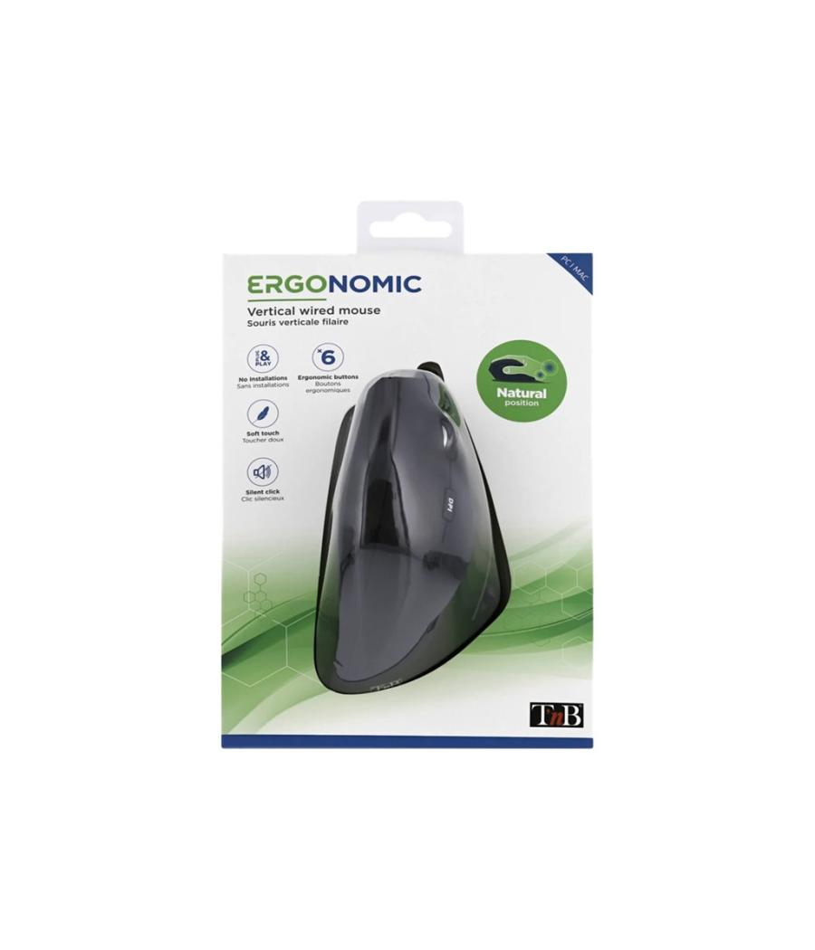 T'nB Ergonomic Verical Mouse - Souris verticale - optique - 5 boutons - filaire - USB - noir et argent