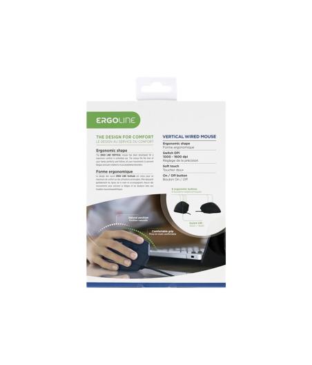 | Souris filaire ergonomique verticale avec rétroéclairage sur la partie intérieure. Plug&Play, elle se connecte automatiquement une fois le câble USB branché à l'ordinateur. Maintient l'avant-bras aligné dans une position naturelle. Prévient confortablement fatigue et douleurs résultant de l'usage prolongé de souris traditionnelles. 6 boutons (dont "suivant", "précédent", réglage dpi et molette cliquable). |