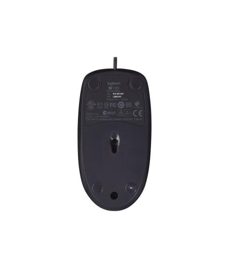 Logitech M100 - Souris - pleine taille - droitiers et gauchers - optique - 3 boutons - filaire - USB - noir
