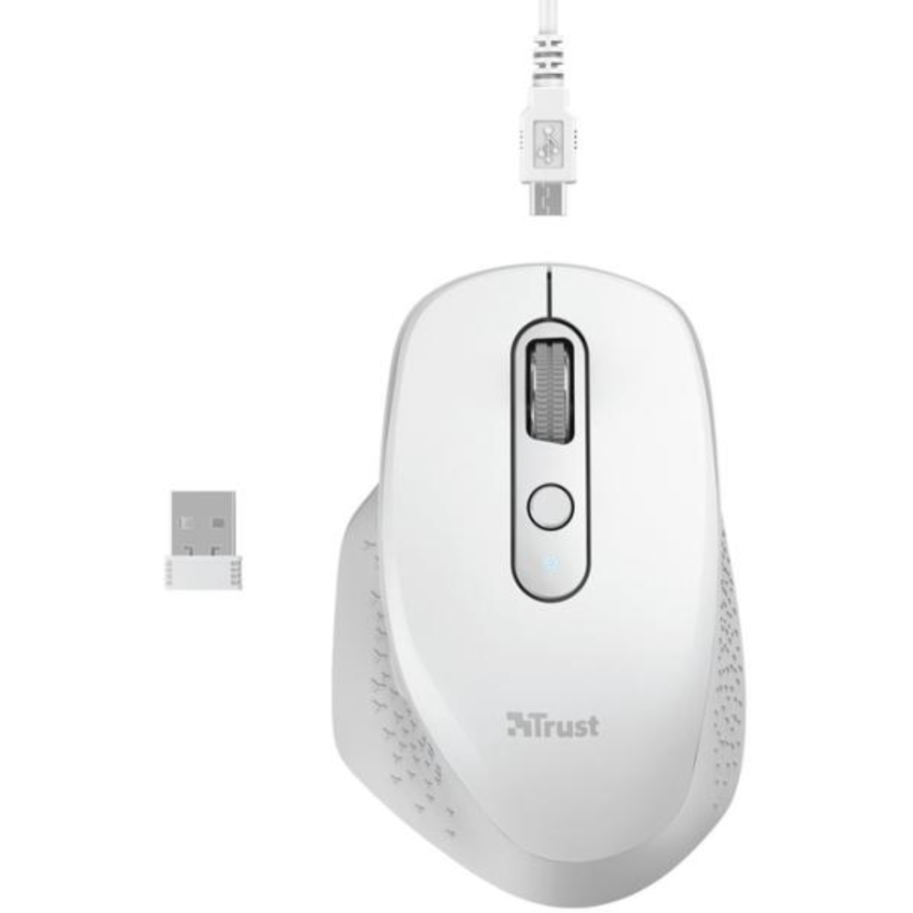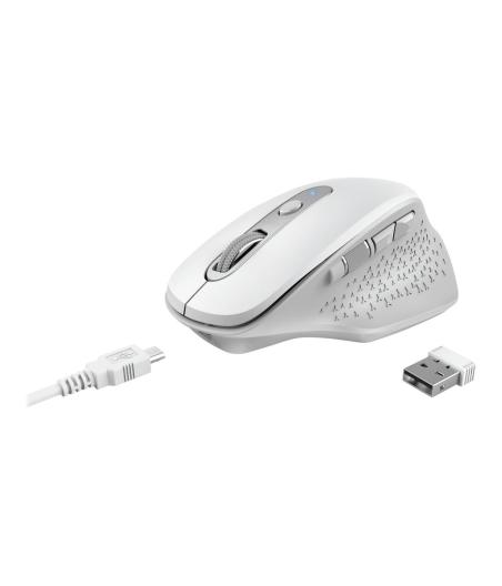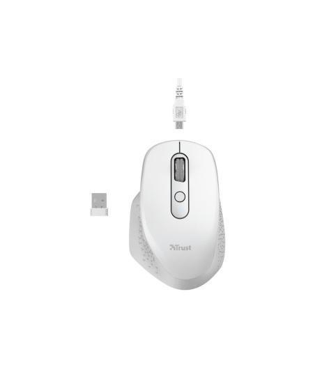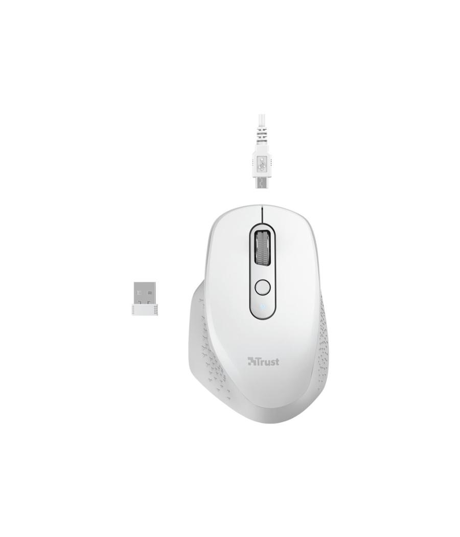 Trust Ozaa - Souris - compact, multi-appareil - pour droitiers - optique - 6 boutons - sans fil - 2.4 GHz, Bluetooth - r?cepteur sans fil USB - blanc