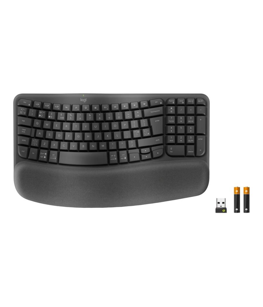 | Clavier ergonomique au design ondulé avec repose-poignets matelassé pour un confort continu tout au long de la journée. |