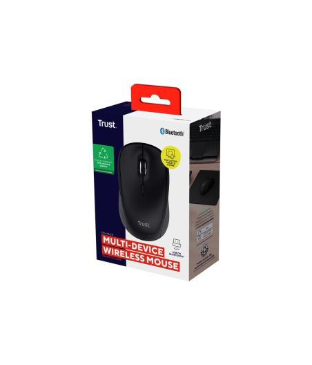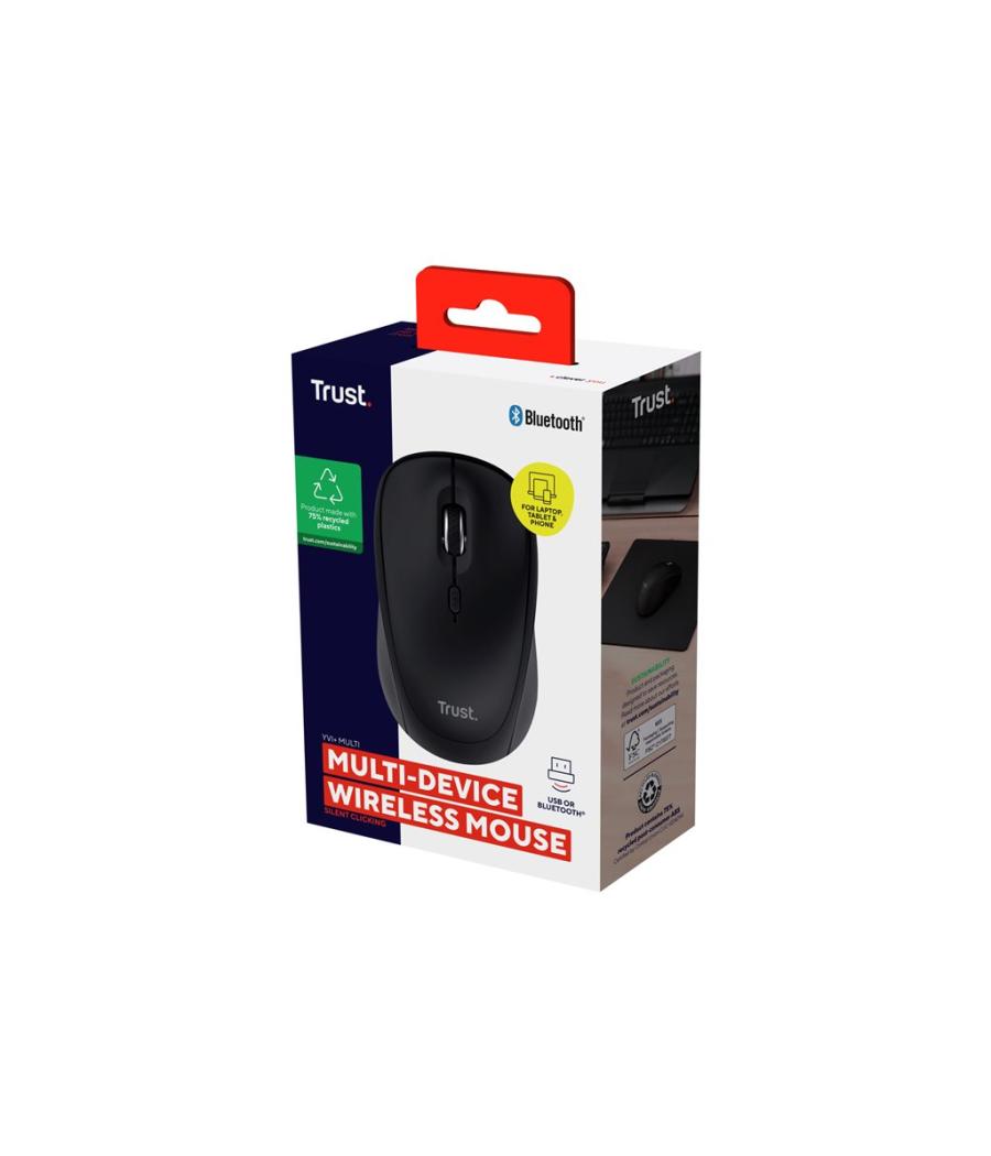 Souris Trust Yvi+ - compact, multi-appareil - droitiers et gauchers - optique - 3 boutons - sans fil - 2.4 GHz, Bluetooth 5.0 - récepteur sans fil USB - noir.