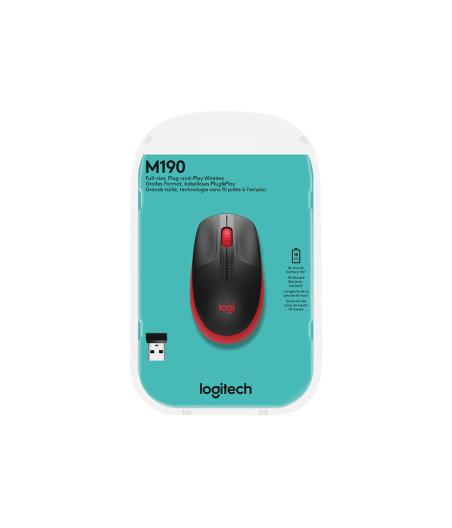 Souris Logitech M190 - optique - 3 boutons - sans fil - récepteur sans fil USB - rouge.