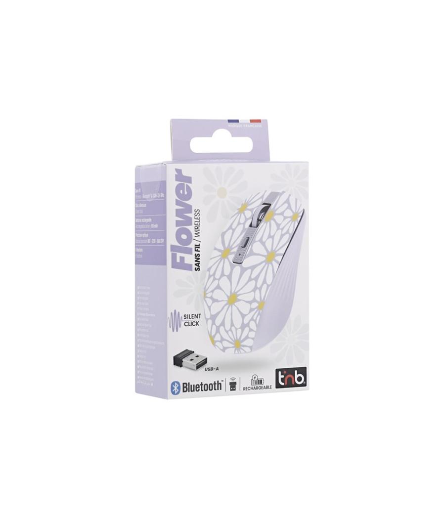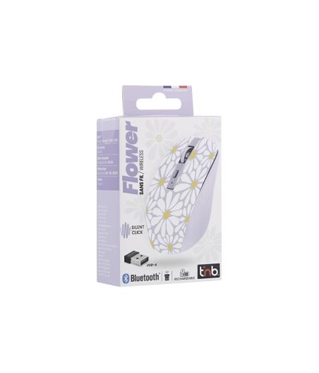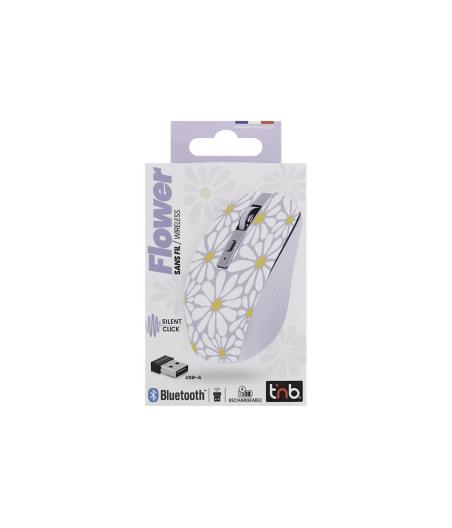 T'nB EXCLUSIV' Flower - Souris - rechargeable - 6 boutons - sans fil - 2.4 GHz, Bluetooth - r?cepteur sans fil USB-C - lavande