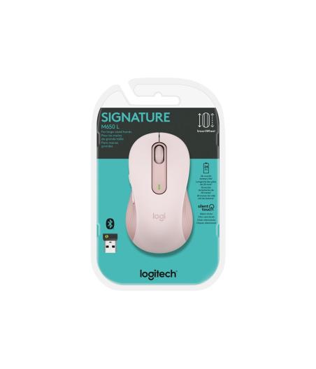 Logitech Signature M650 L - Souris - grande taille - optique - 5 boutons - sans fil - Bluetooth, 2.4 GHz - récepteur USB Logitech Logi Bolt - rose