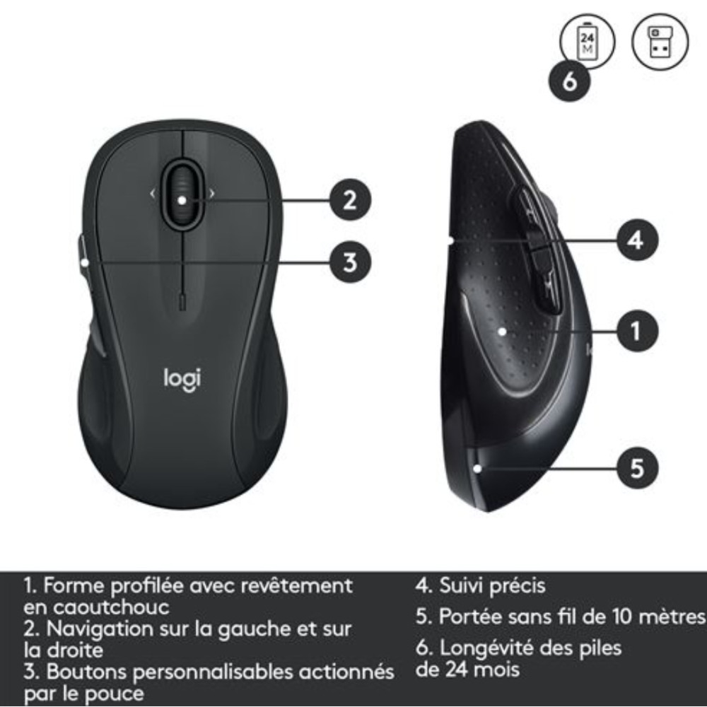 Logitech M280 - Souris - pour droitiers - optique - 3 boutons - sans fil - 2.4 GHz - récepteur sans fil USB - noir