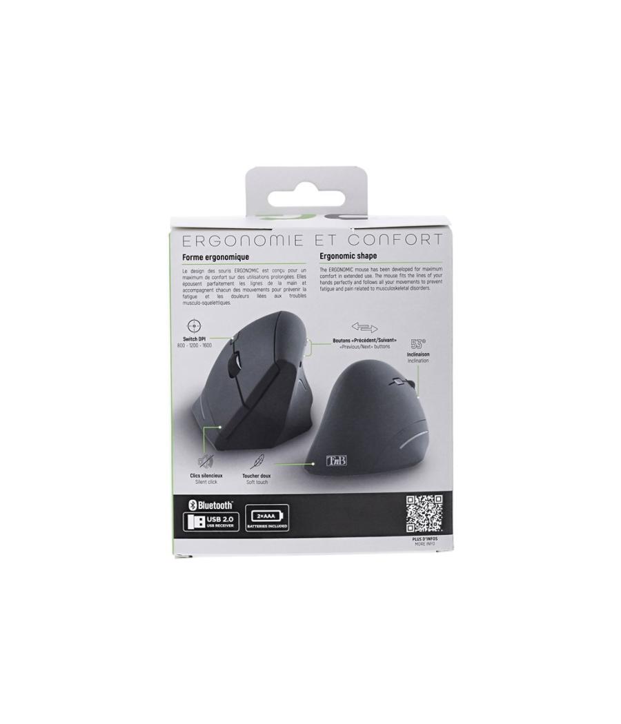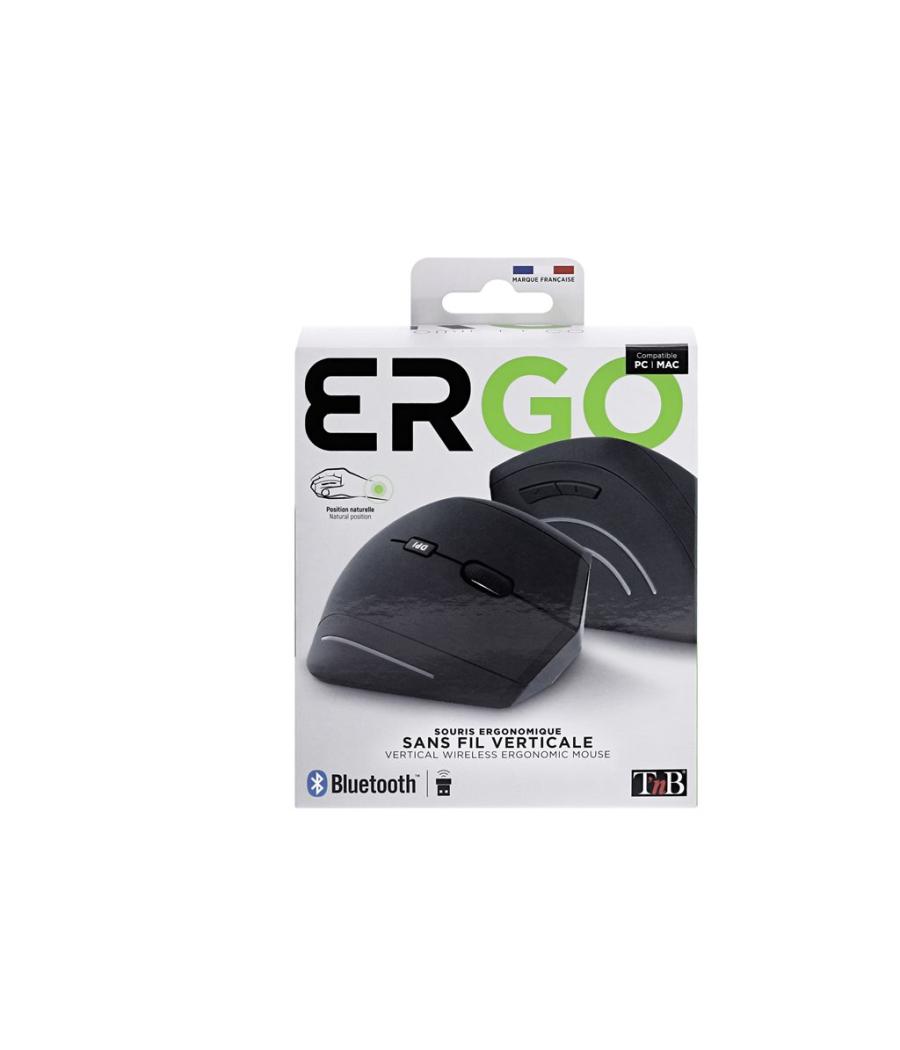 T'nB Ergo - Souris verticale - ergonomique - ultra-l?ger - pour droitiers - optique - 6 boutons - sans fil - Bluetooth, 2.4 GHz - r?cepteur sans fil USB - noir - bo?te de suspension