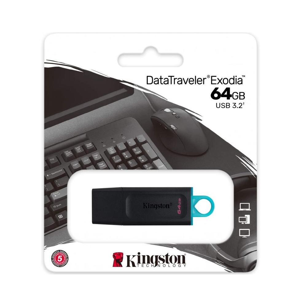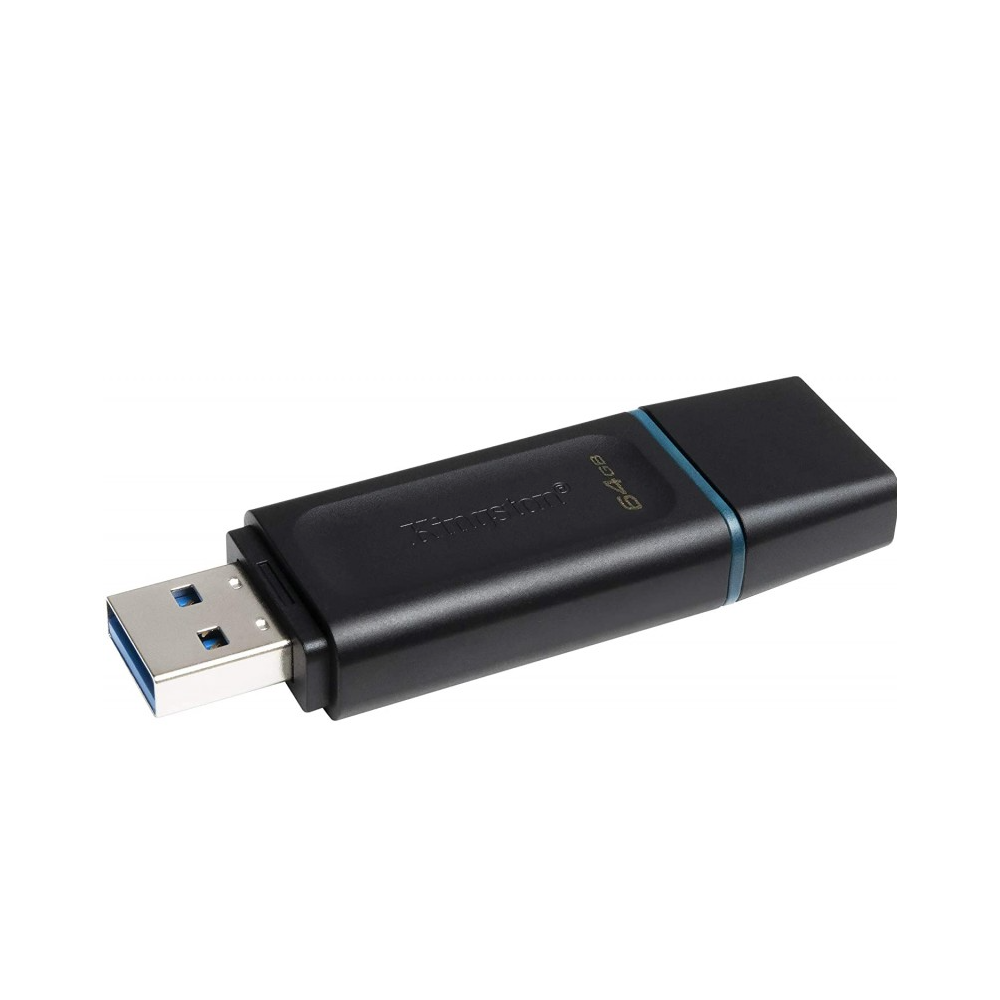 Clé USB3.2 64Go Kingston DataTravel EXODIA - Interface avec l'ordinateur: USB 3.2 Gen 1 - Capacité: 64 Go - OS compatibles: Windows® 10, 8.1, 8, Mac OS (v.10.10.x +), Linux (v. 2.6.x +), Chrome™ OS - Données sécurisées: non - Cryptage des données: Non - Résistant au chocs: Non - Couleur: Noir / Boucle bleue ciel - Largeur: 67.3 mm, Hauteur: 10.1 mm, Profondeur: 21 mm - Poids: 11 g.