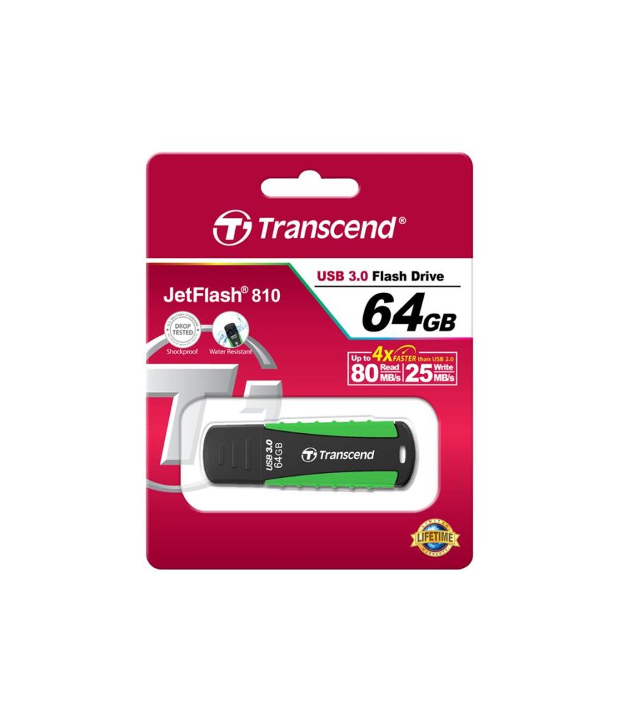 | La clé USB 3.0 Transcend JetFlash 810 est rapide grâce à ses taux de transfert en USB 3.0, compacte de par ses dimensions et offre de grandes capacités de stockage. Son design unique fait d'elle une clé stylisée et antichoc. Créée pour protéger vos données pendant vos déplacements, la JetFlash 810 se caractérise également par une coque externe en caoutchouc qui offre une protection excellente contre les chocs, les éclaboussures, la poussière et l'humidité. | |