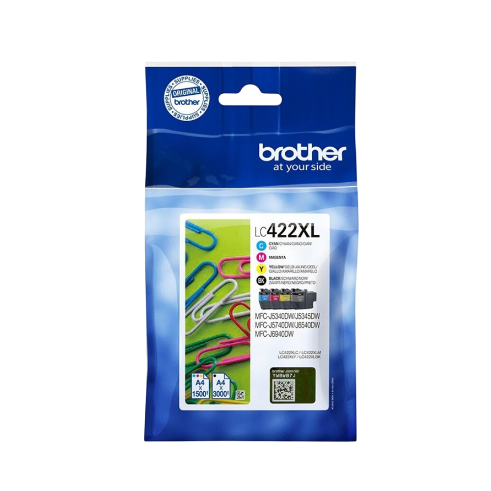 Vous recherchez une cartouche qui offre des performances optimales à chaque impression? Le multipack XL Brother LC422XLVAL (comprenant des cartouches d'encre XL noire, cyan, jaune et magenta), résiste à la décoloration, garantit des impressions fiables et de qualité supérieure sur toute la durée de vie de l'imprimante. Les encres parfaitement équilibrées garantissent un fonctionnement optimal de votre imprimante. Brother considère l'impact environnemental à chaque étape du cycle de vie de votre cartouche d'encre, ce qui réduit les déchets dans les décharges. Tous les matériels et cartouches d'encre sont conçus pour avoir le moins d'impact possible sur l'environnement. Cartouches d'encre originales Brother LC422XLVAL - toujours le bon choix. |