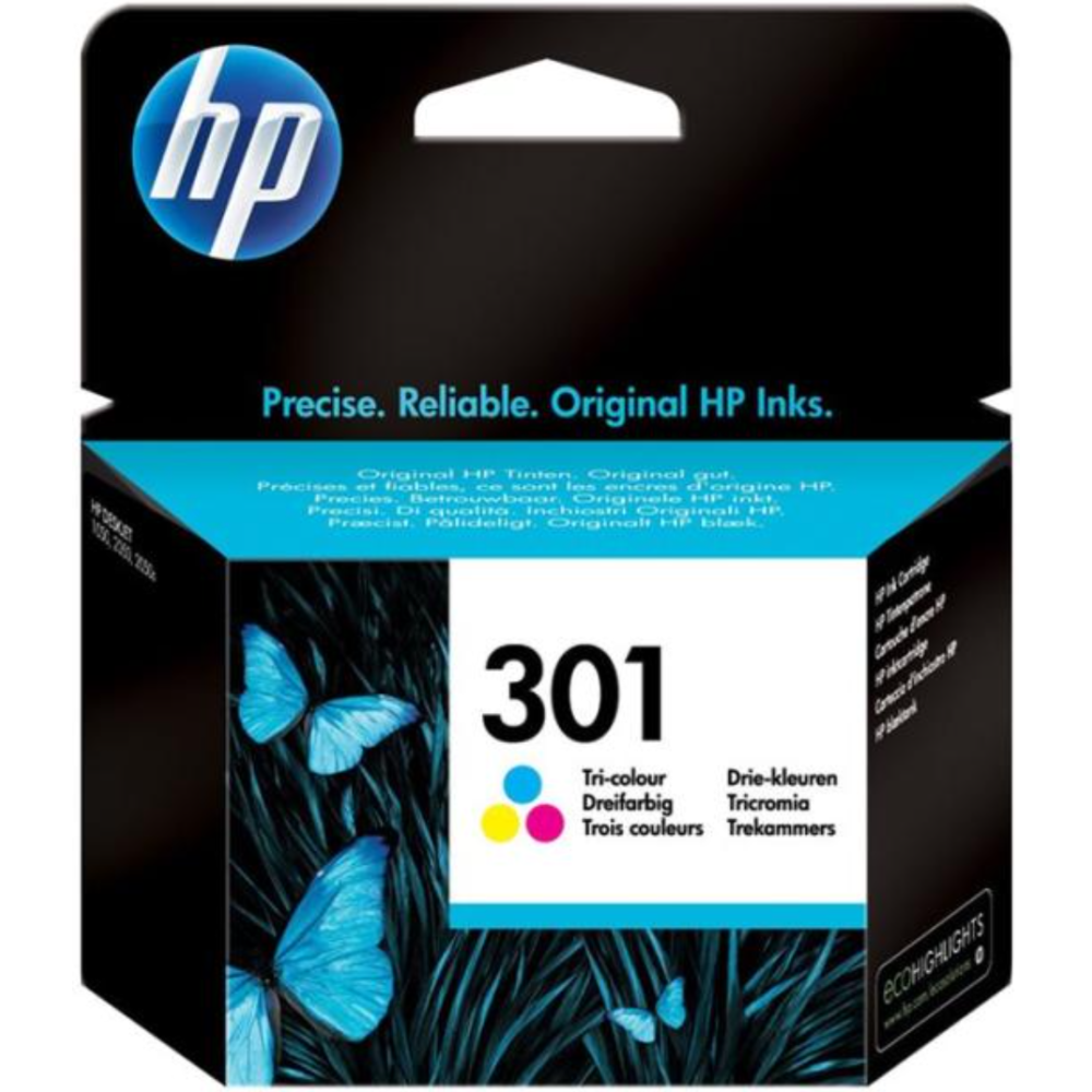 HP 301 - 3 ml - couleur (cyan, magenta, jaune) - original - blister - cartouche d'encre - pour HP DeskJet 1000, 1010, 1050 AiO, 1050A AiO, 1510 AiO, 2000, 2050 AiO, 2050A AiO, 2510 AiO, 2540 AiO, 3000, 3050 AiO, 3050A eAiO, 3510 eAiO series, HP ENVY 4500 eAiO, 5530 eAiO series, HP OfficeJet 2620 AiO, 4630 eAiO series