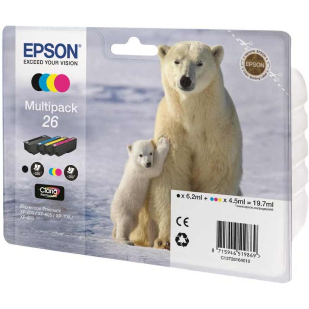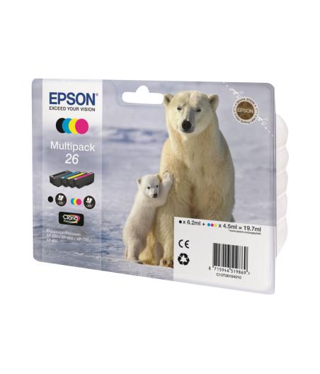 Epson 26 Multipack - Pack de 4 - noir, jaune, cyan, magenta - original - cartouche d'encre - pour Expression Premium XP-510, 520, 600, 605, 610, 615, 620, 625, 700, 710, 720, 800, 810, 820