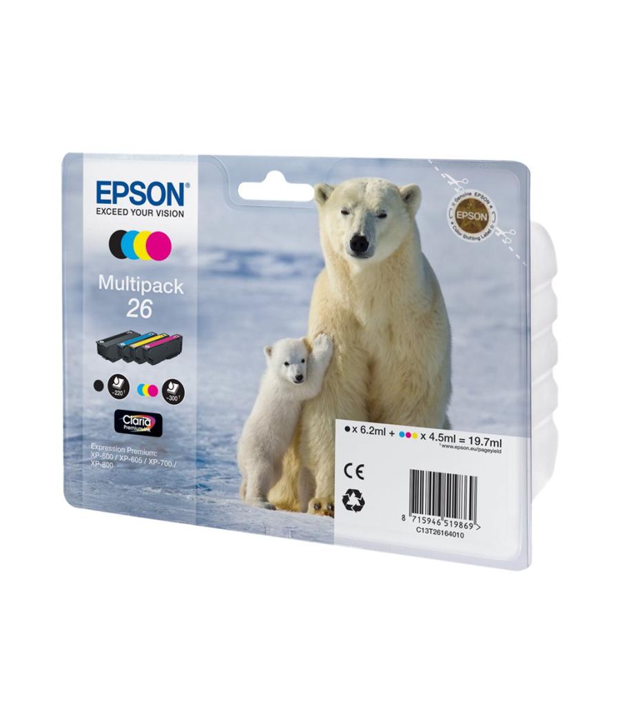Epson 26 Multipack - Pack de 4 - noir, jaune, cyan, magenta - original - emballage coque avec alarme radioélectrique/ acoustique - cartouche d'encre - pour Expression Premium XP-510, 520, 600, 605, 620, 625, 700, 720, 800, 820