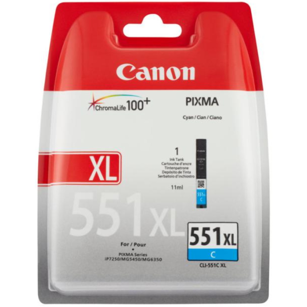 Canon CLI-551C XL - 11 ml - à rendement élevé - cyan - original - réservoir d'encre - pour PIXMA iP8750, iX6850, MG5550, MG5650, MG5655, MG6450, MG6650, MG7150, MG7550, MX725, MX925