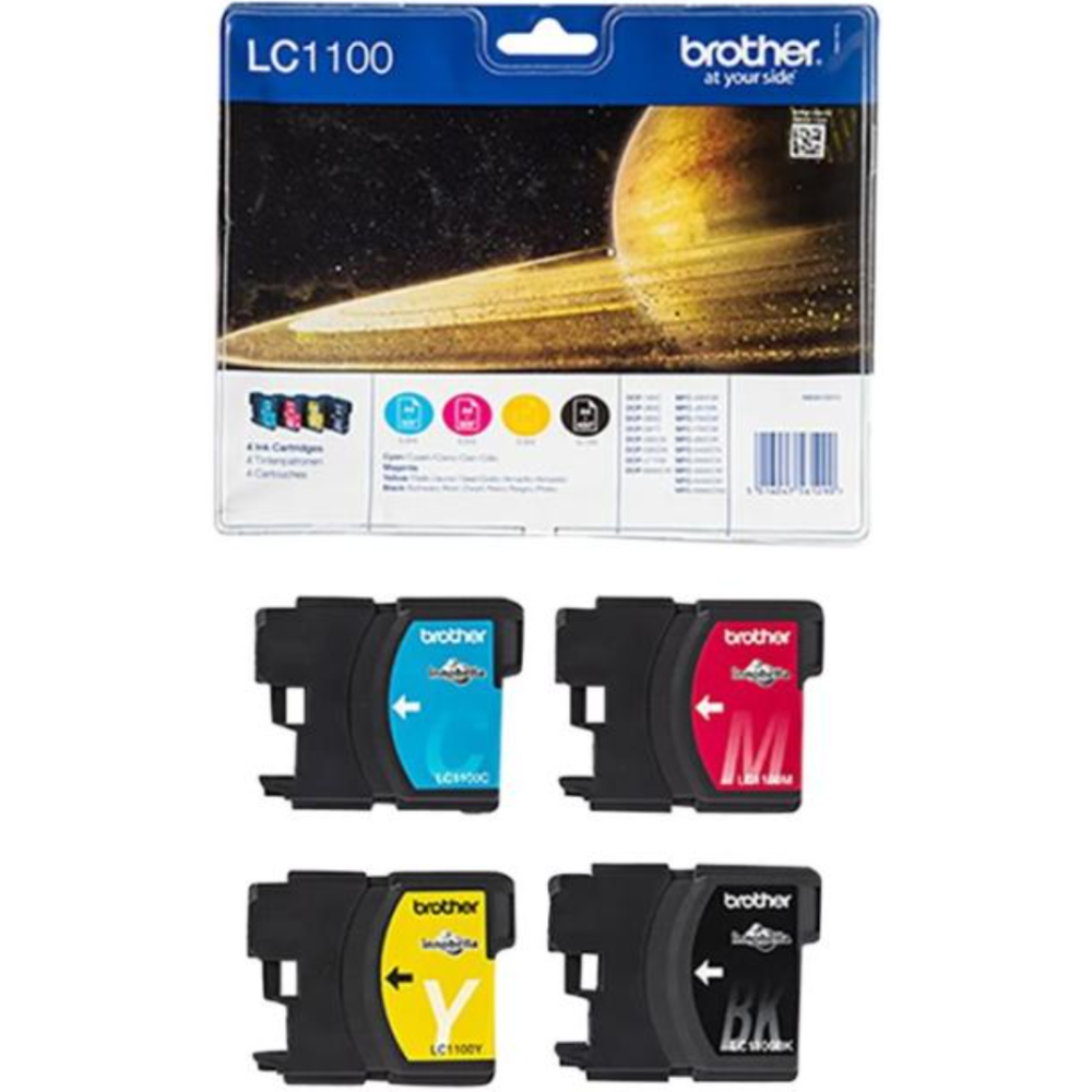 Brother LC1100 Value Pack - Pack de 4 - noir, jaune, cyan, magenta - original - blister - cartouche d'encre - pour Brother DCP-185, 385, 395, J715, MFC-490, 5490, 5890, 5895, 6890, 790, 795, 990, J615