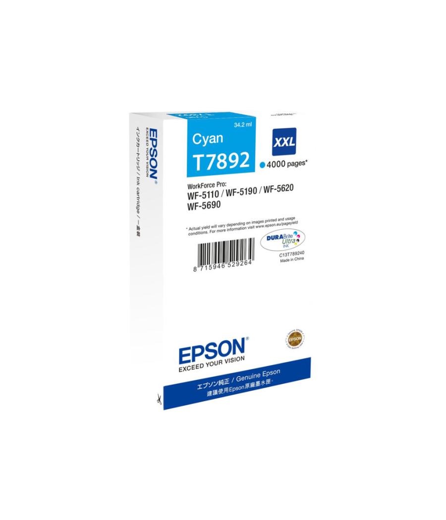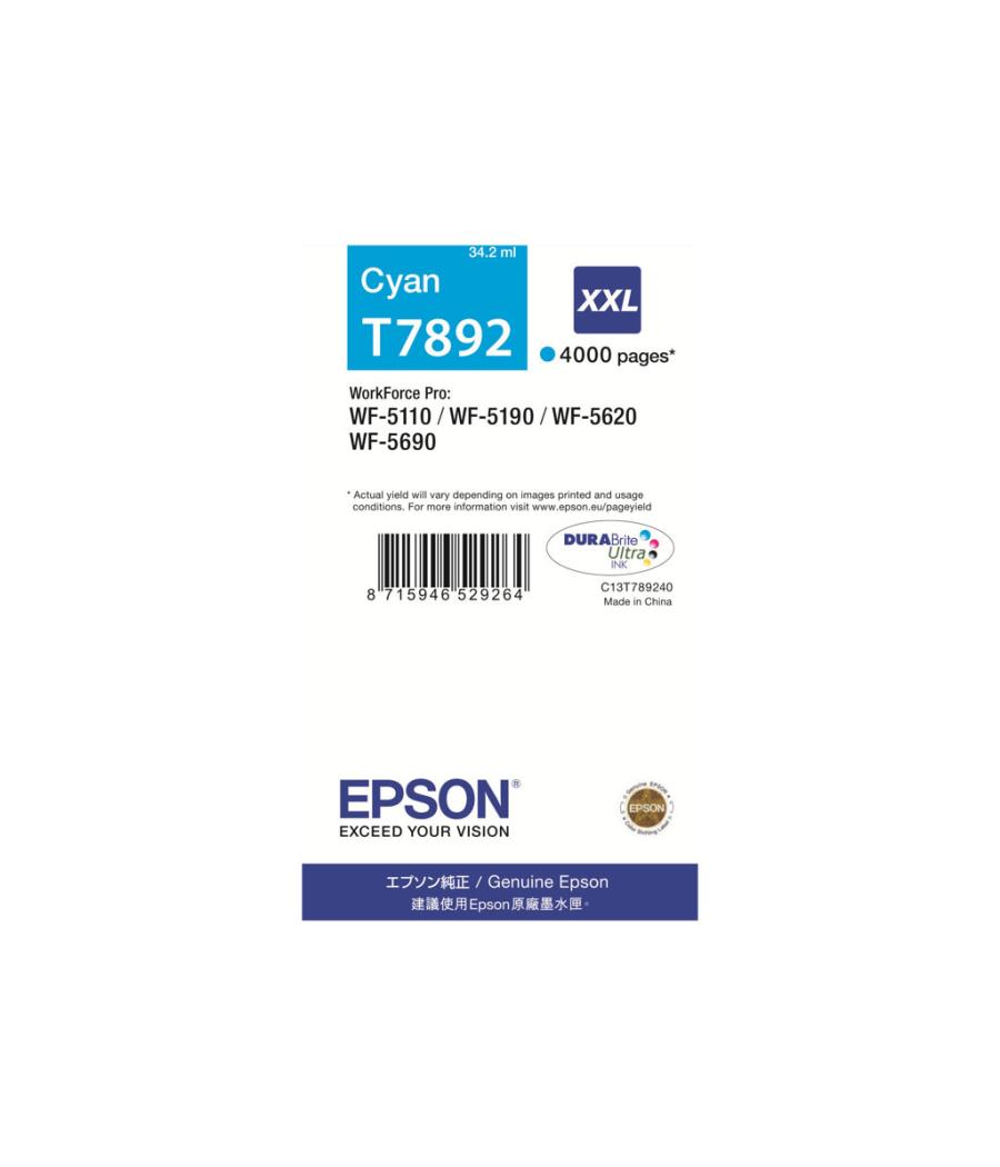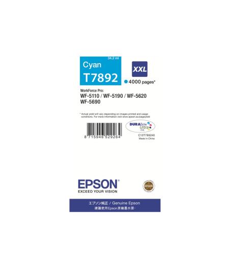 Epson T7892 - 34.2 ml - taille XXL - cyan - original - cartouche d'encre - pour WorkForce Pro WF-5110DW, WF-5190DW, WF-5190DW BAM, WF-5620DWF, WF-5690DWF, WF-5690DWF BAM
