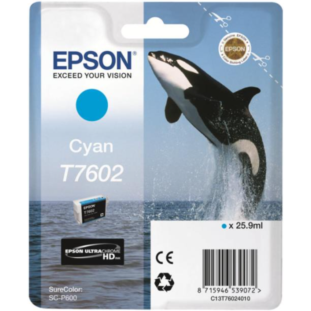 Epson T7602 - 26 ml - cyan - original - blister - cartouche d'encre - pour SureColor P600, SC-P600