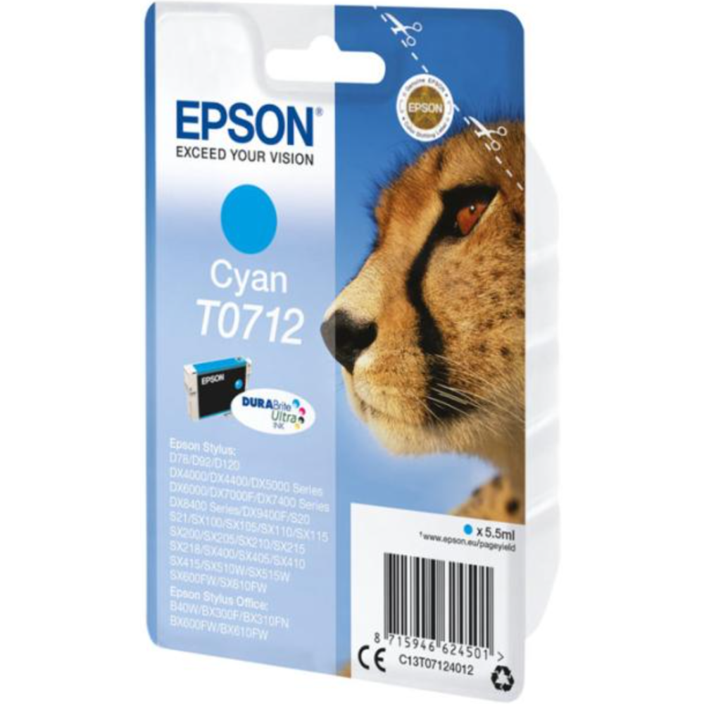 Epson T0712 - 5.5 ml - cyan - original - cartouche d'encre - pour Stylus DX9400, SX115, SX210, SX215, SX218, SX415, SX515, SX610; Stylus Office BX310, BX610