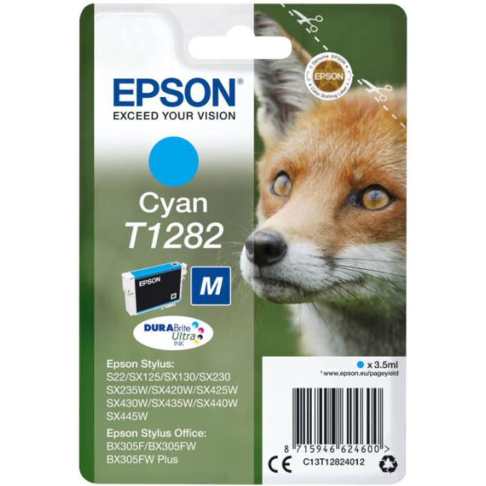 Epson T1282 - 3.5 ml - taille M - cyan - original - blister - cartouche d'encre - pour Stylus S22, SX130, SX230, SX235, SX430, SX435, SX438, SX440, SX445; Stylus Office BX305