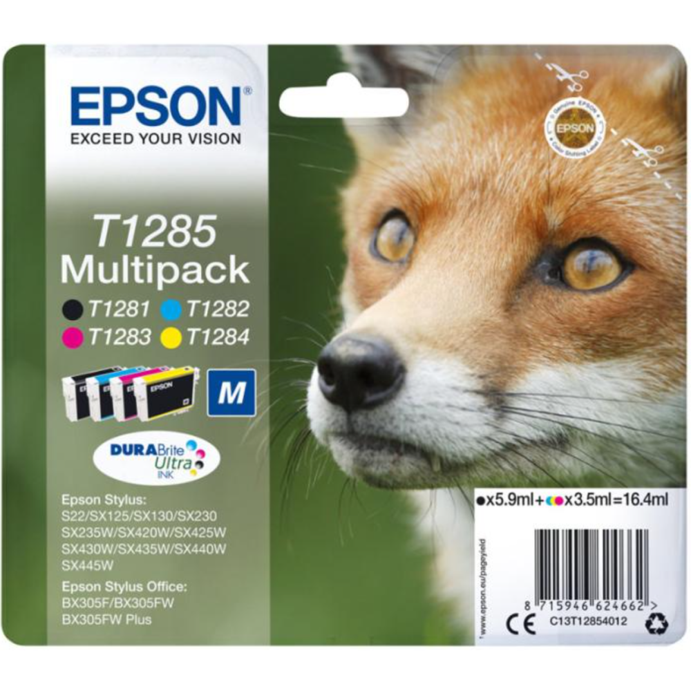 Epson T1285 Multipack - Pack de 4 - 16.4 ml - noir, jaune, cyan, magenta - original - cartouche d'encre - pour Stylus S22, SX130, SX230, SX235, SX430, SX435, SX438, SX440, SX445; Stylus Office BX305