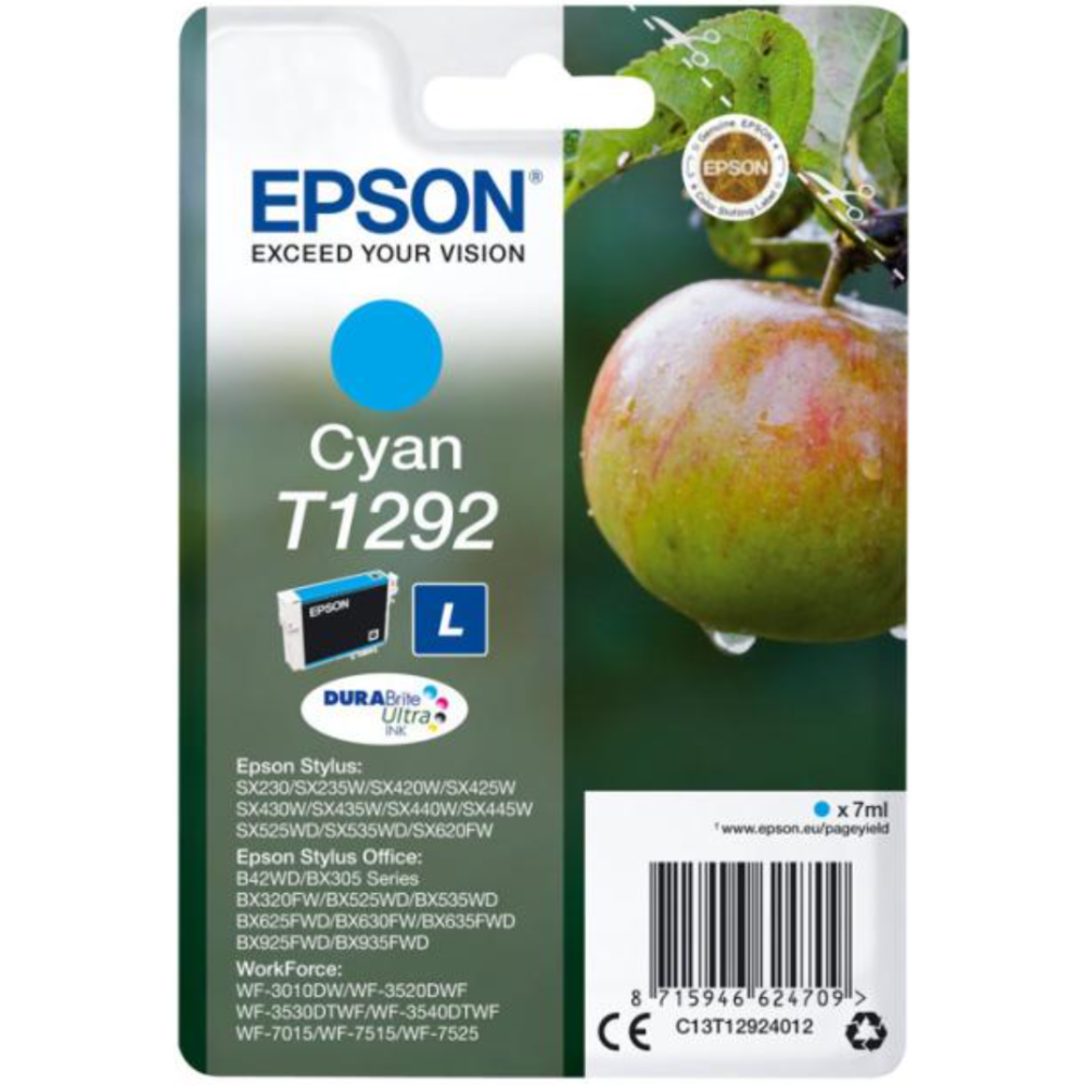 Epson T1292 - 7 ml - taille L - cyan - original - blister - cartouche d'encre - pour Stylus SX230, SX235, SX430, SX438; WorkForce WF-3010, 3520, 3530, 3540, 7015, 7515, 7525