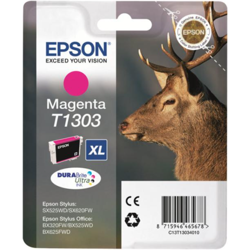 Epson T1303 - 10.1 ml - taille XL - magenta - original - blister - cartouche d'encre - pour Stylus Office BX630, BX635, BX935; WorkForce WF-3010, 3520, 3530, 3540, 7015, 7515, 7525