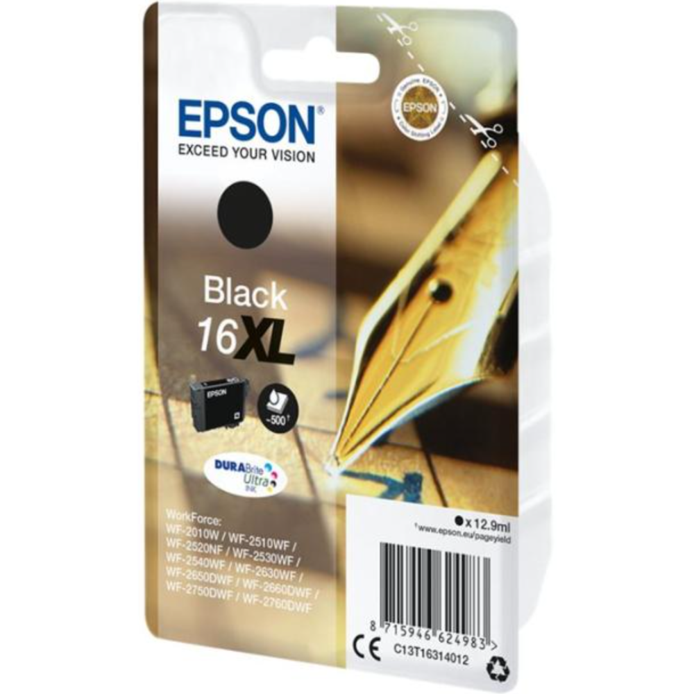 Epson 16XL - 6.5 ml - XL - noir - original - emballage coque avec alarme radioélectrique/ acoustique - cartouche d'encre - pour WorkForce WF-2010, 2510, 2520, 2530, 2540, 2630, 2650, 2660, 2750, 2760
